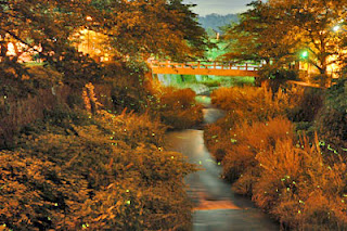 山口市は、県庁所在地にもかかわらず、この時期になるとホタルがそこかしこで乱舞する。観光で紹介されるのは一ノ坂のホタル祭り。祭りというのだが、沿道の店が照明を落とす程度で、特別なことはなく、静かにホタルのゆったりとしたほのかな光を味わうには一ノ坂はなかなかよい。しかし、ホタルの密度はそれほど高くないのが欠点。山口市の人はそれぞれ秘密のホタルスポットを知っているようだ。山口市には多くの農業用の小さな川がたくさんあり、それらは市の中央を流れるふしの川に流れ込む。これらの小川を山側に辿っていくとたいていホタルの乱舞がみられる。1本の木にクリスマスツリーのようにホタルがみれる場所もある。