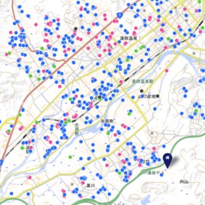 地盤調査関連のジャパンホームシールド(株)が開設している「地盤サポートマップ」というもので、新しく土地を買うならチェックしておいた方が良いかも(ココ)。